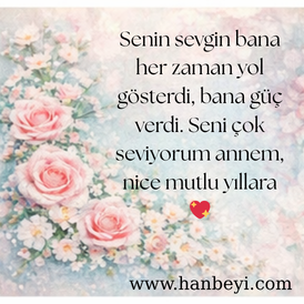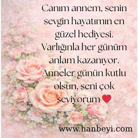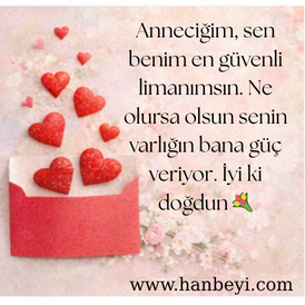 Bu dünyadaki en güvenli sığınağım senin kucağın. Benim annem olman bu dünyadaki en büyük şansım. Seni seviyorum annem.