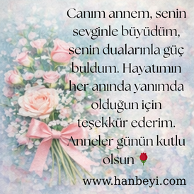 1.Senin sevginle büyüdüm, gücünü hep arkamda hissettim. Anneler Günün kutlu olsun canım annem!