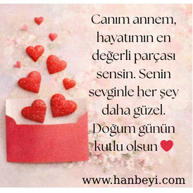 Karşılıksız sevginin, fedakârlığın eş anlamlı kelimesi anne. Doğum gününü en içten dileklerimle kutlarım. Benden hiç ayrılmayasın anacım. Seni çok seviyorum.