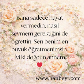 1.Bana hayatı, sevgiyi ve güveni öğrettin. Senin gibi bir anneye sahip olduğum için sonsuz şükürler olsun.